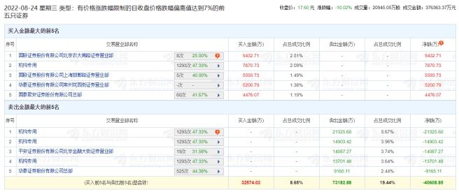 龙虎榜数据显示,作为有价格涨跌幅限制的日收盘价格跌幅偏离值达到7%的前五只证券,买入江淮汽车金额最大的前五名中,有1家机构专用席位;卖出江淮汽车金额最大的前五名中,有3家机构专用席位。经统计,江淮汽车的机构席位今日净卖出金额为.77万元。?